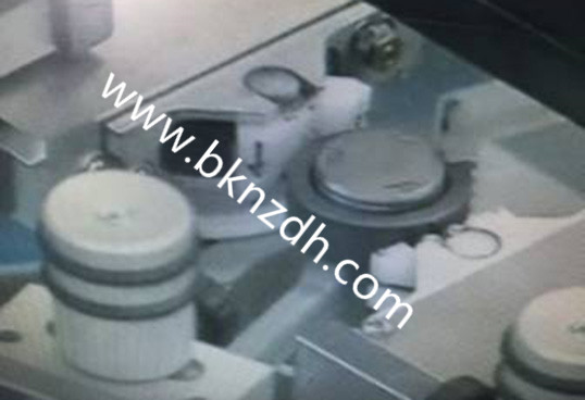 由兩只膠輥同向旋轉(zhuǎn)帶動(dòng)上面的活塞桿旋轉(zhuǎn),再由推料桿推動(dòng)活塞桿從探頭下經(jīng)過(guò)完成檢測(cè)。