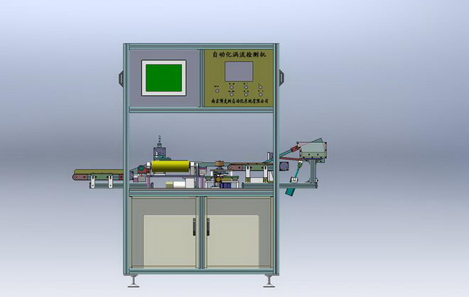 This system is suitable for eddy current inspection of roller outer surface. The whole system consists of four parts: testing instrument, probe, machinery and electricity. Multi-frequency and multi-filter technology, impedance plane analysis and multi-amplitude phase-amplitude area alarm technology are used to realize automatic defect detection, automatic alarm and automatic sorting at the same time.